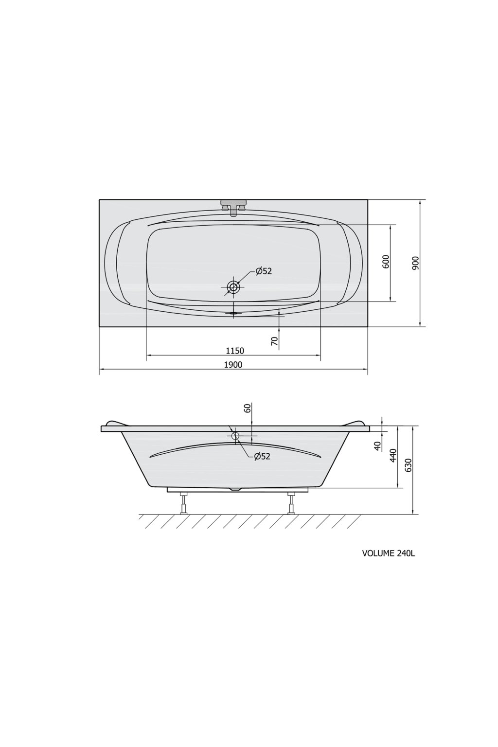 Obdélníková vana GARDA v rozměru 190x90x44 cm