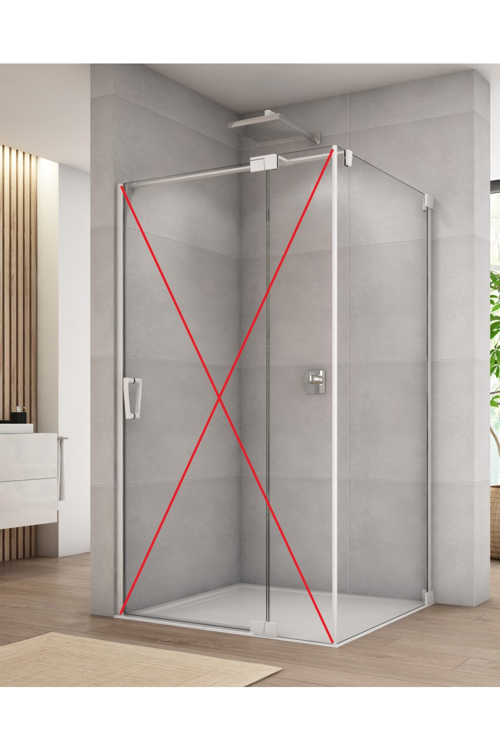 V případě montáže na dlažbu je nutno vzít v úvahu rozdíl mezi nominální a fyzickou šířkou. Skutečná šířka (na střed skla) dveří s boční stěnou je o 33 mm menší než šířka v objednacím kódu. (s tolerancí -7 až +8 mm).