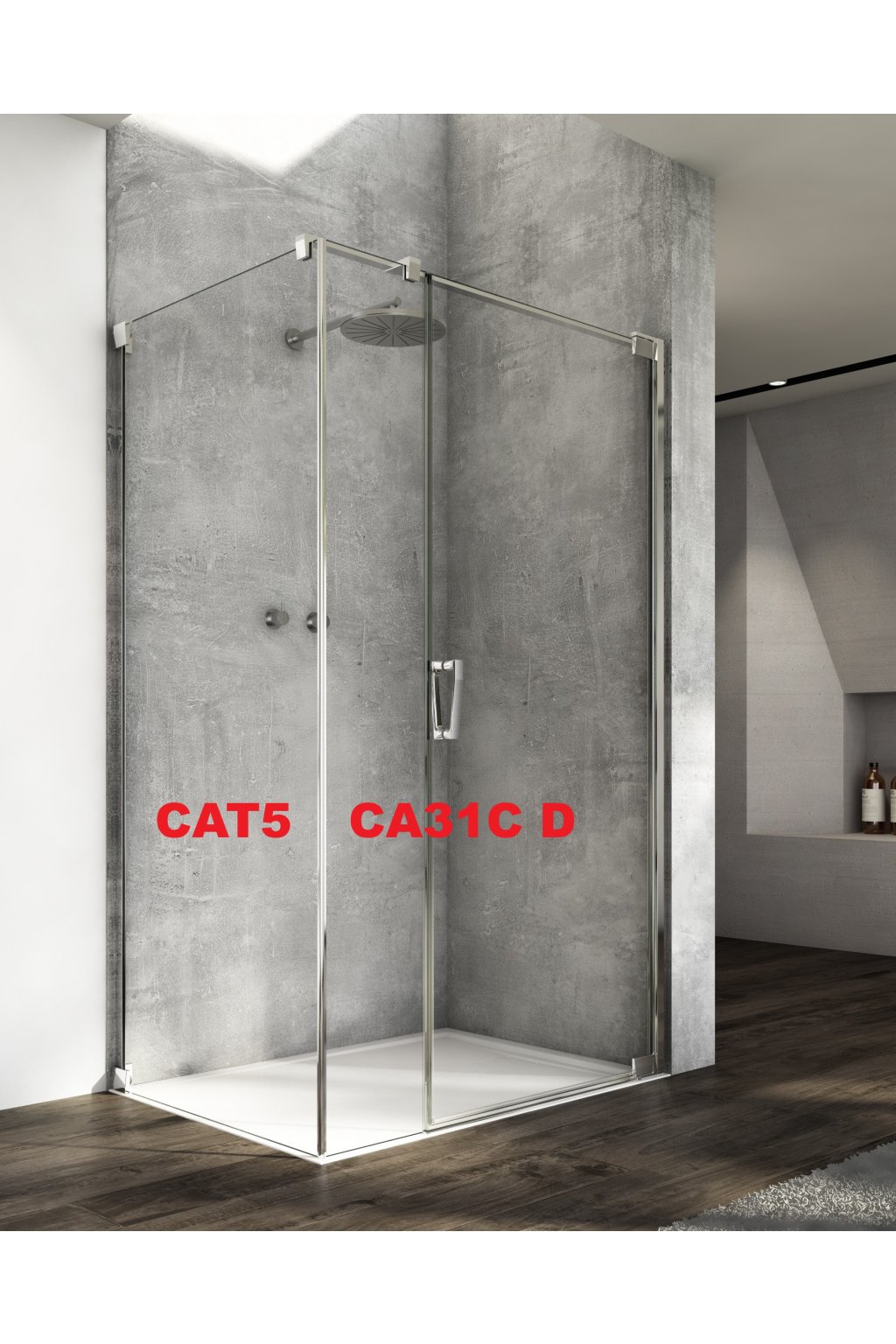 Boční stěna pro dveře v 90° na straně pevné stěny CAT5 (pouze pro kombinaci s jednokřídlými dveřmi s pantem u zdi a s pevnou stěnou v rovině CA31C)