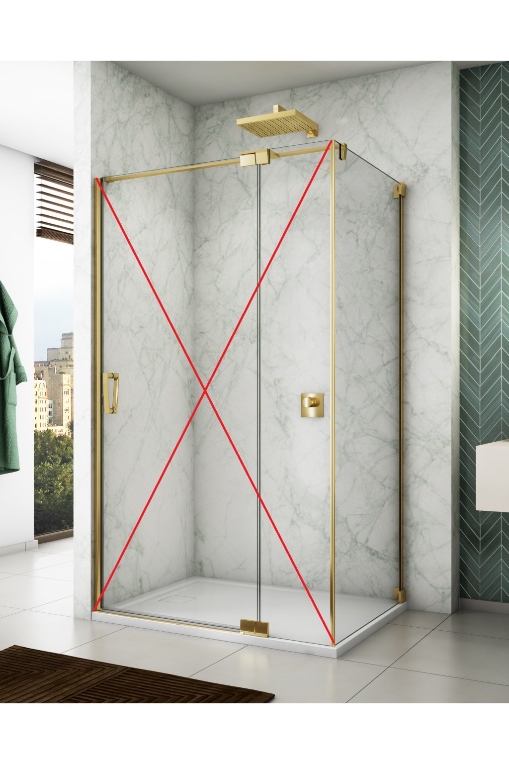 6mm bezpečnostní sklo s antiplakovou úpravou Aquaperle. Vodorovná vzpěra 1400 mm. Výška (výška skla) 2000 mm. Barva 12 zlatá lesklá. Sklo 07 čiré.