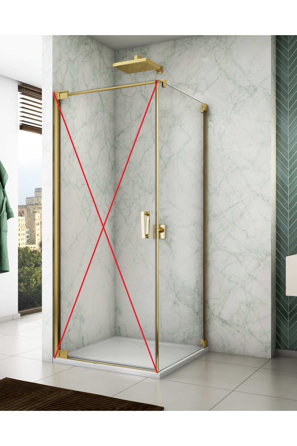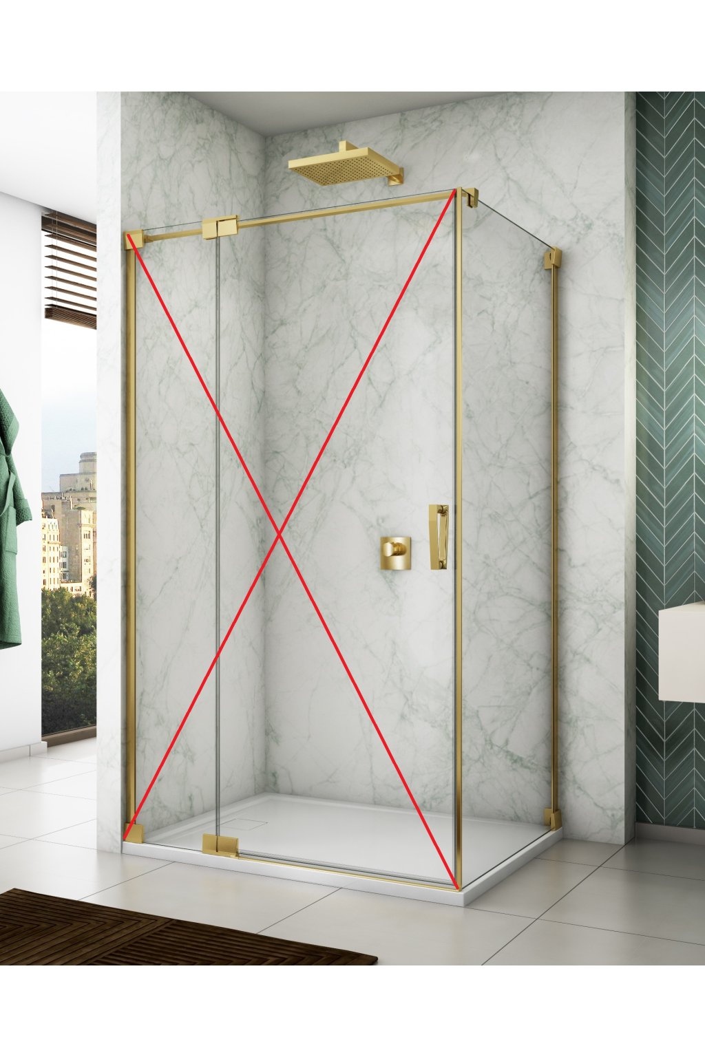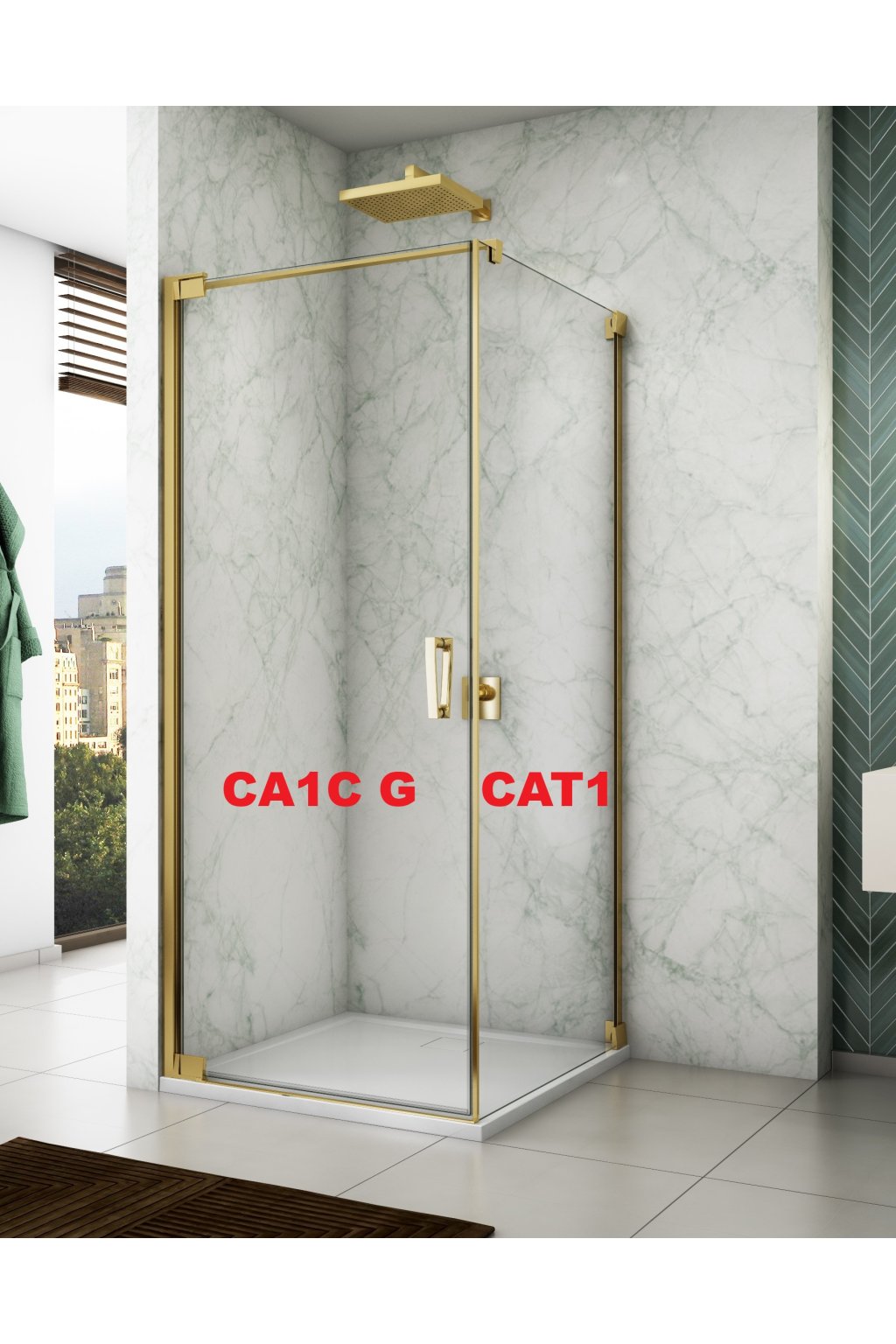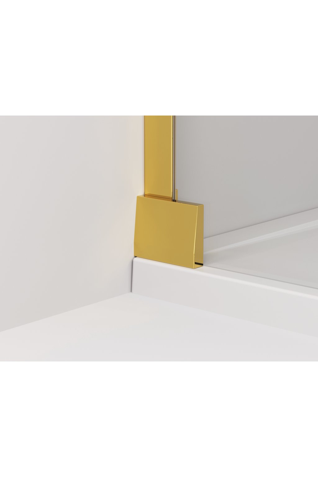 6mm bezpečnostní sklo s antiplakovou úpravou Aquaperle. Včetně stabilizační vzpěry 1400 mm. Výška: 2000 mm. Výška skla: 1984 mm. Barva 12 zlatá lesklá. Sklo 07 čiré.