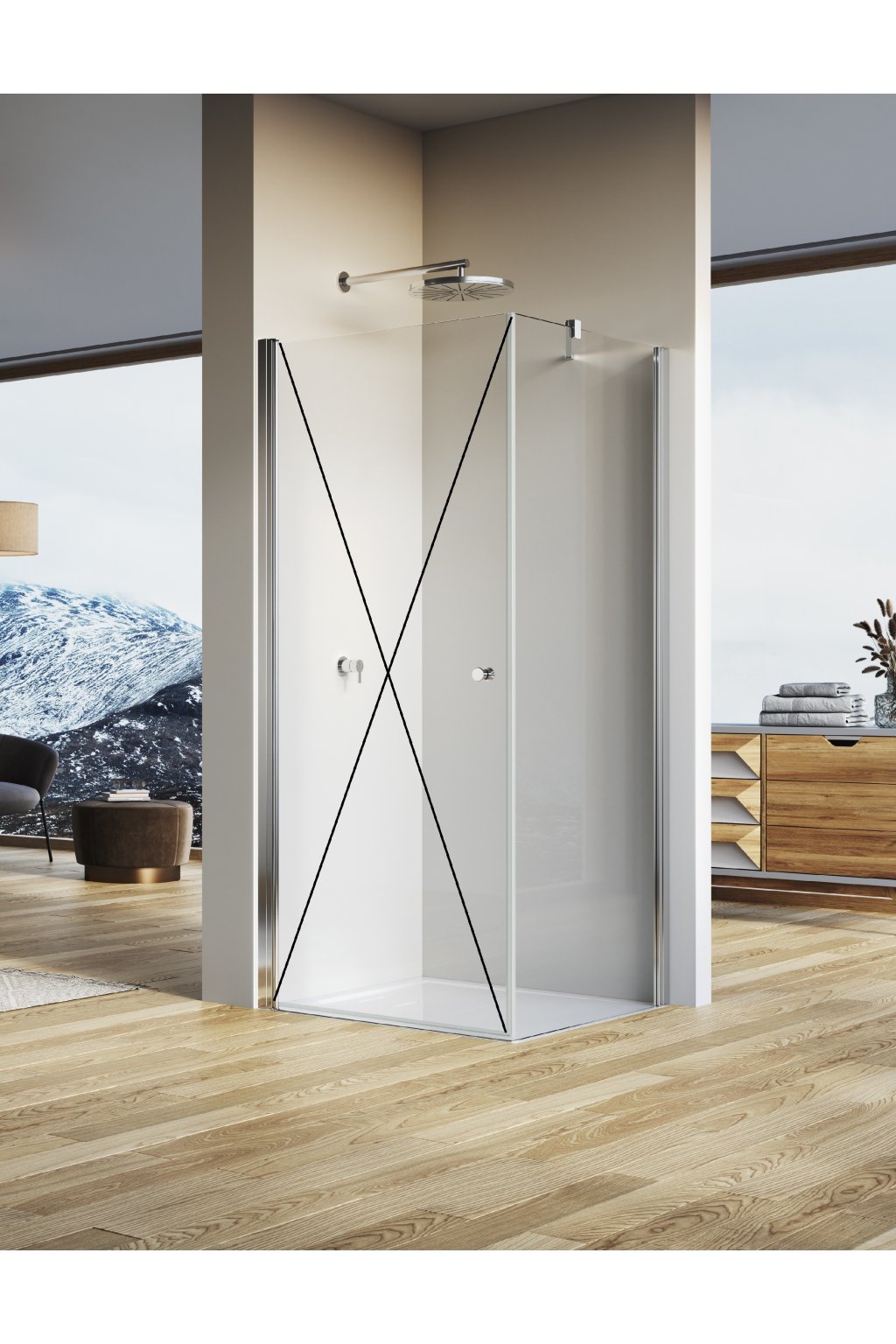 6mm bezpečnostní sklo s antiplakovou úpravou Aquaperle. Rohová vzpěra. Výška 1984 mm.