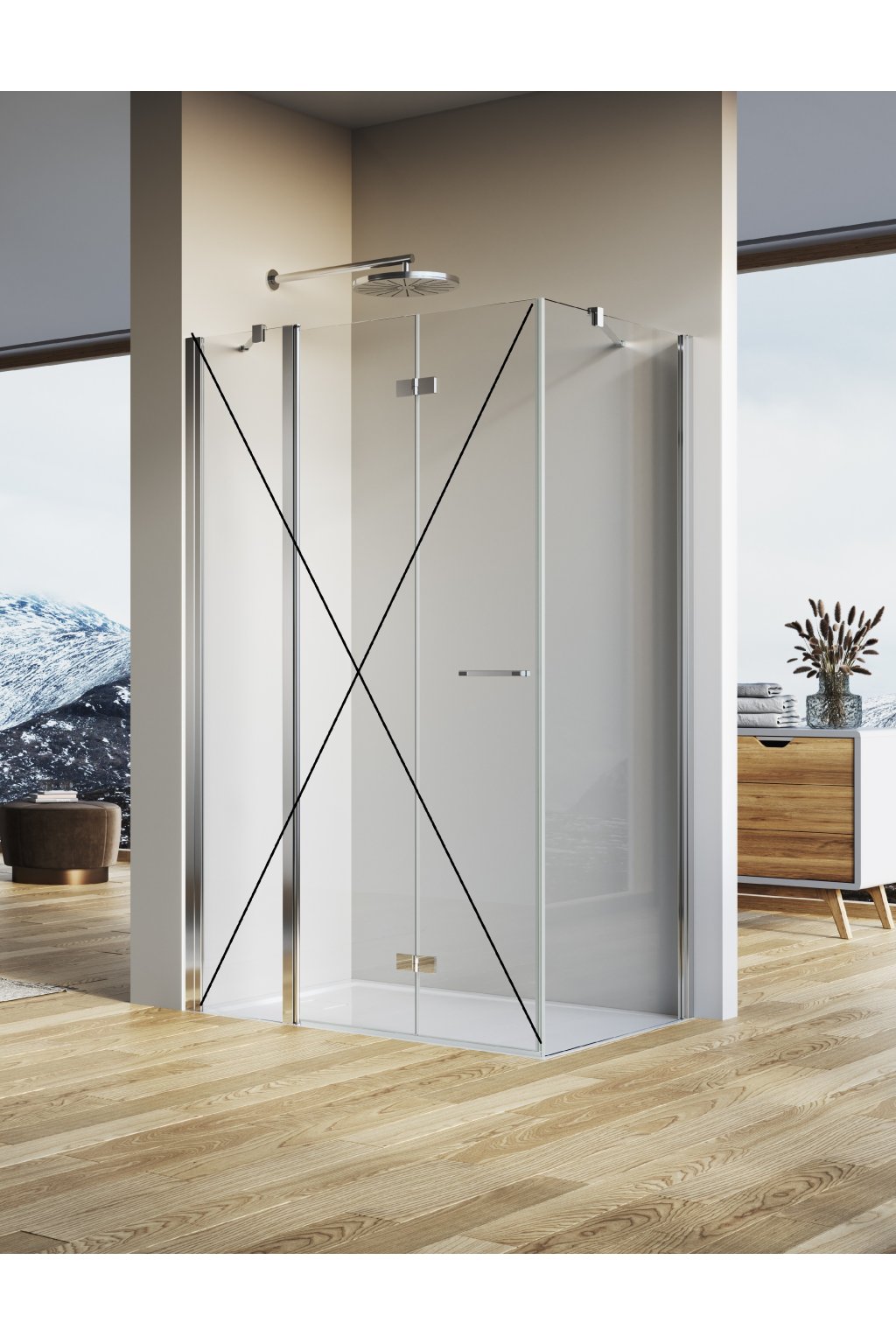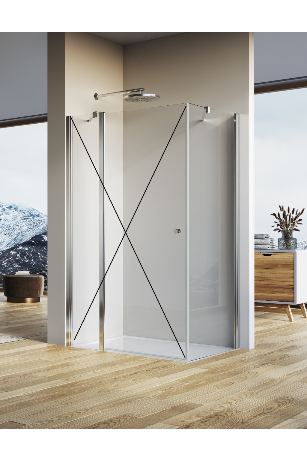 6mm bezpečnostní sklo s antiplakovou úpravou Aquaperle. Rohová vzpěra. Výška 1984 mm.