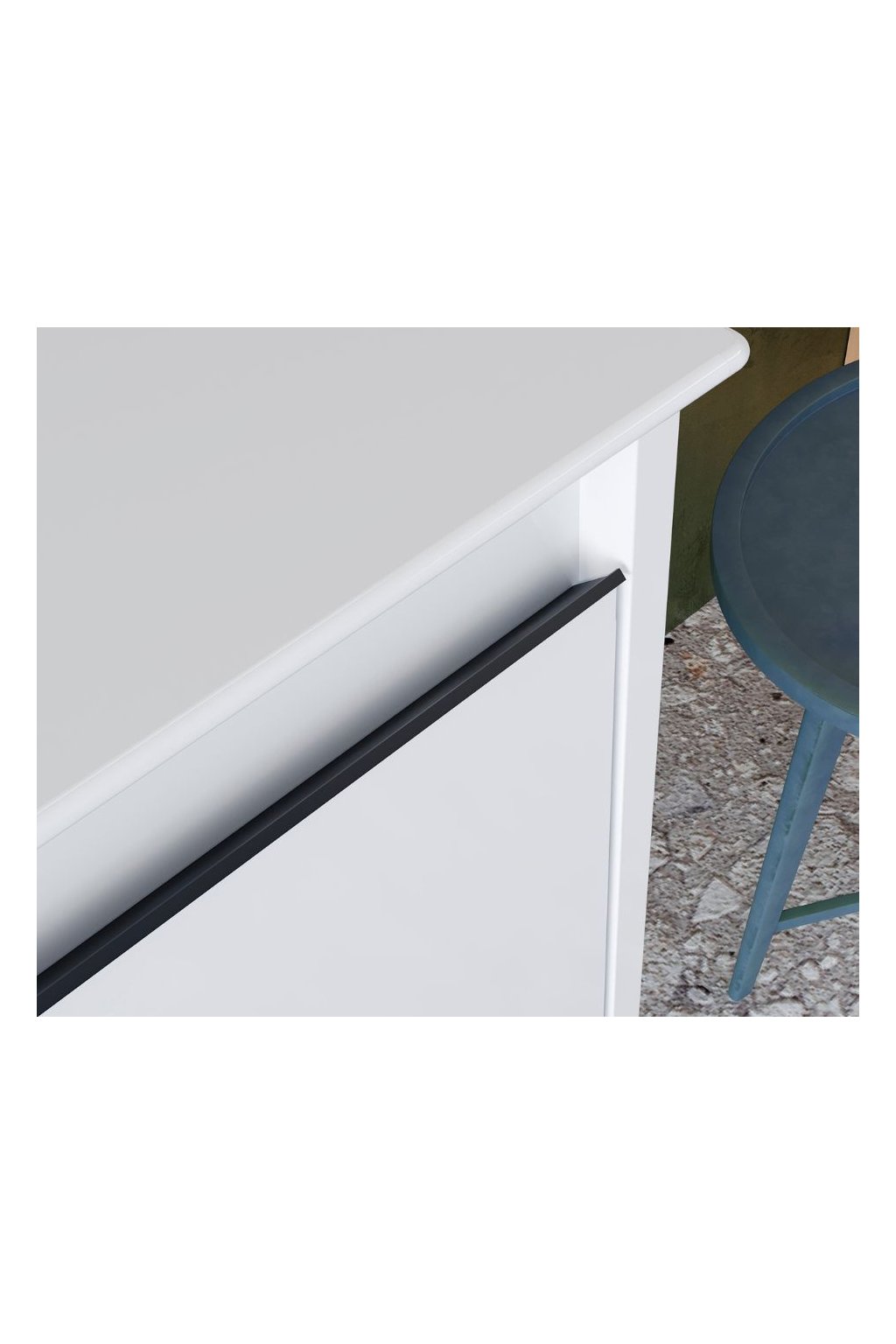 K pohodlnému otevírání zásuvky slouží zafrézovaná úchytka, která nijak neruší celkový design. Úchytku si můžete vybrat ve dvou barvách – černá (T33) a stříbrná (T34). Zásuvka je umístěna na kovových pojezdech německé značky Hettich.