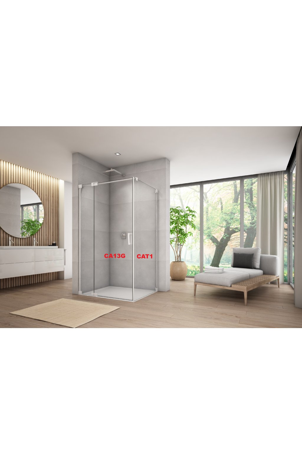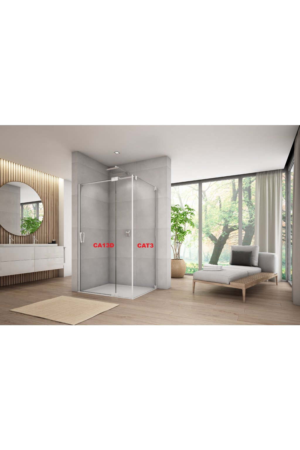 Dveře CA13 lze kombinovat i s boční sprchovou stěnou CAT1 nebo CAT3 v 90°.