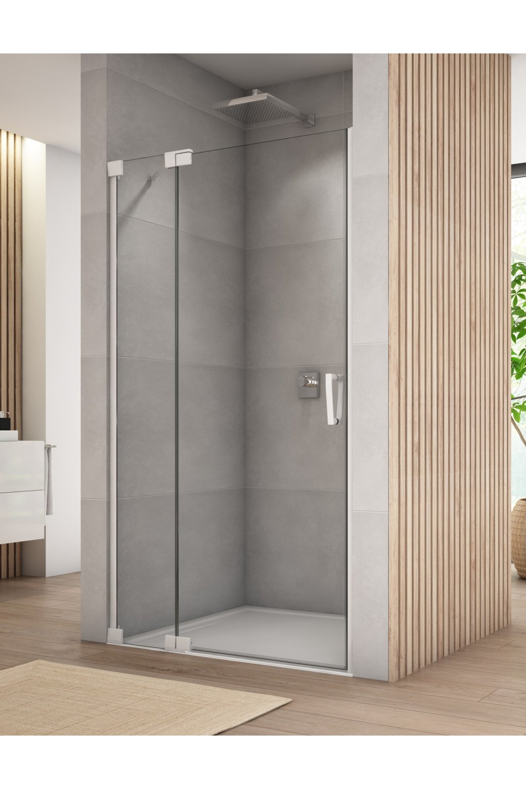6mm bezpečnostní sklo s antiplakovou úpravou Aquaperle. Panty se zdvihovým mechanismem. Otvírání ven i dovnitř. Magnetické těsnění. Rohová vzpěra. 5mm prahová lišta. Nástěnný profil v příslušné barvě. Výška 2000 mm. Barva 09 bílá matná. Sklo 07 čiré.