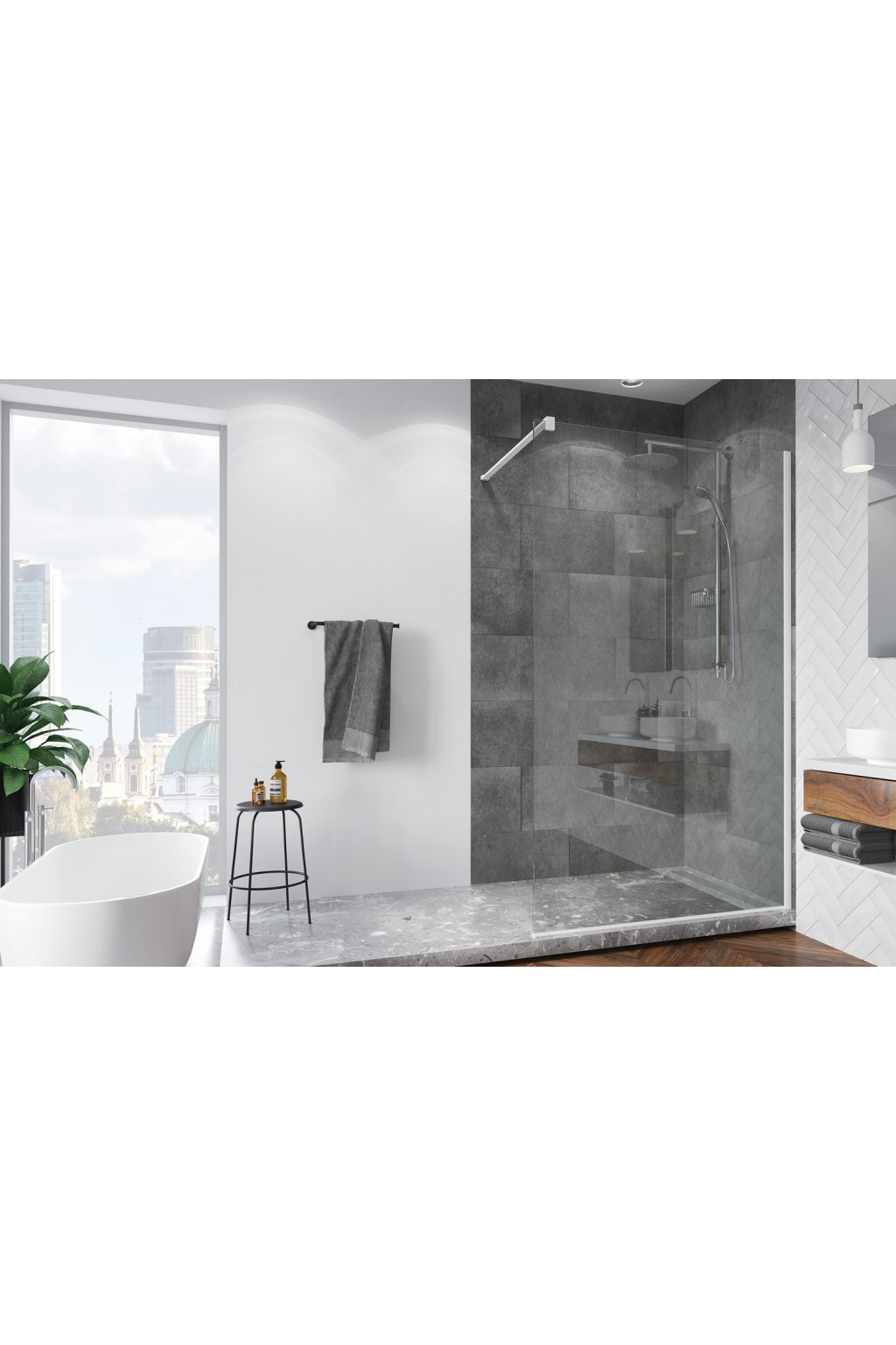 - pevné walk-in zástěny do velkých koupelen.