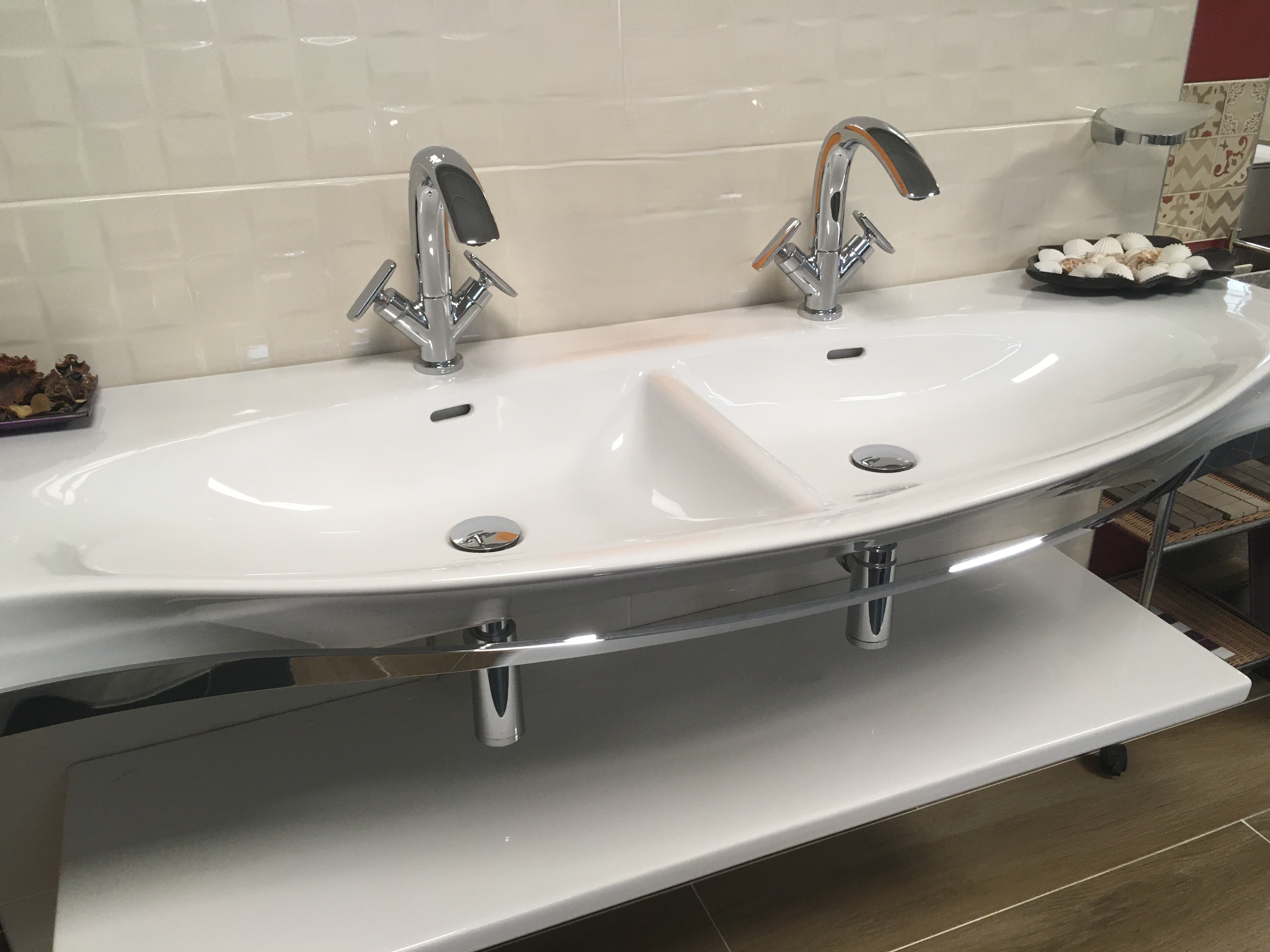 Laufen PALACE dvojumyvadlo 150x51 cm s držákem na ručník H8147060001041 + keramická polička + 2x sifon, VÝPRODEJ VZORKU
