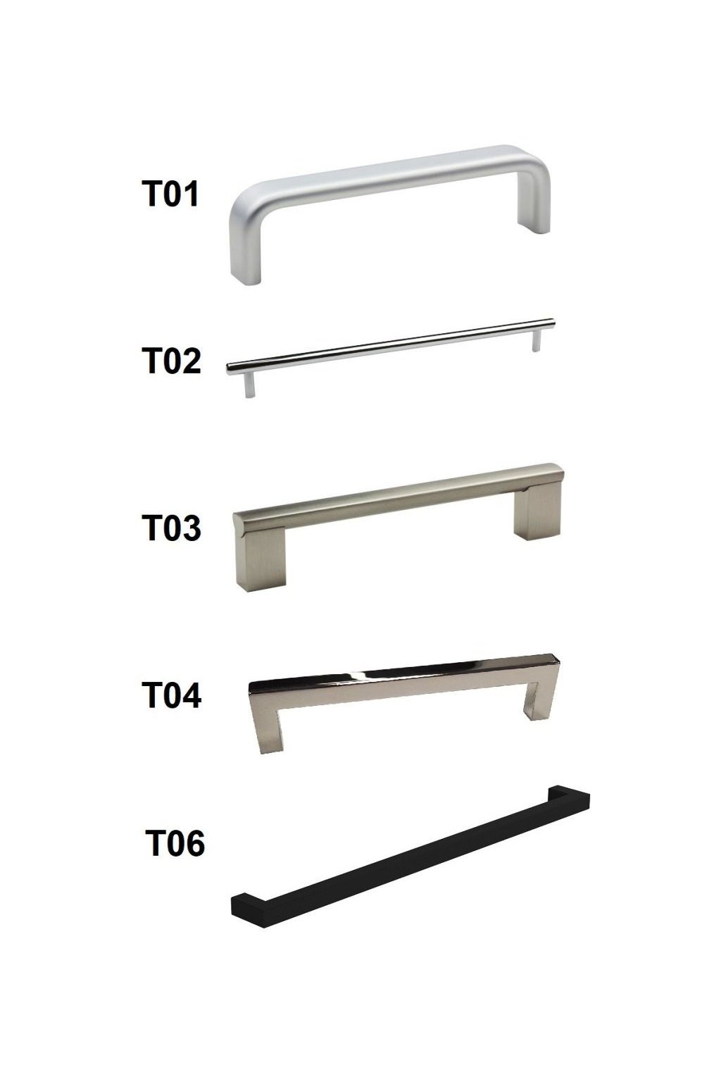 Skříňku si můžete nechat vyrobit v celé řadě dekorů, dřevodekorů či laků. Podle výběru povrchového zpracování se také odvíjí tvar hran dvířek. Zatímco u dekorů a dřevodekorů mají dvířka ostré hrany, tak u laků jsou hrany oblé.