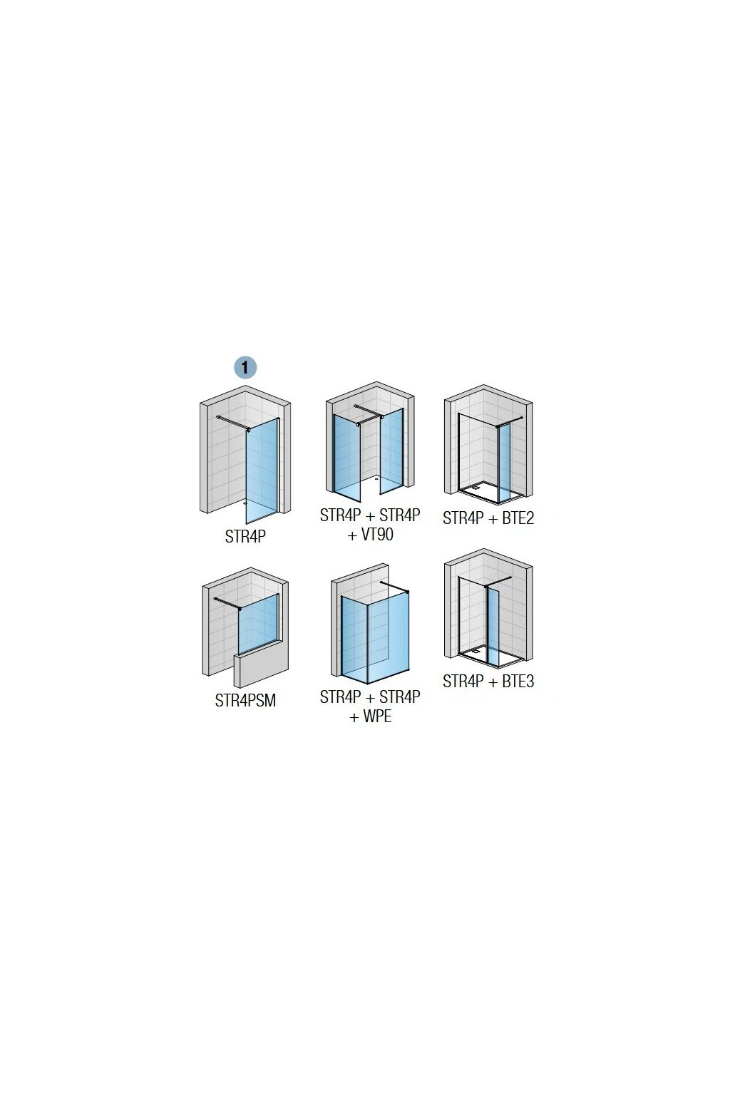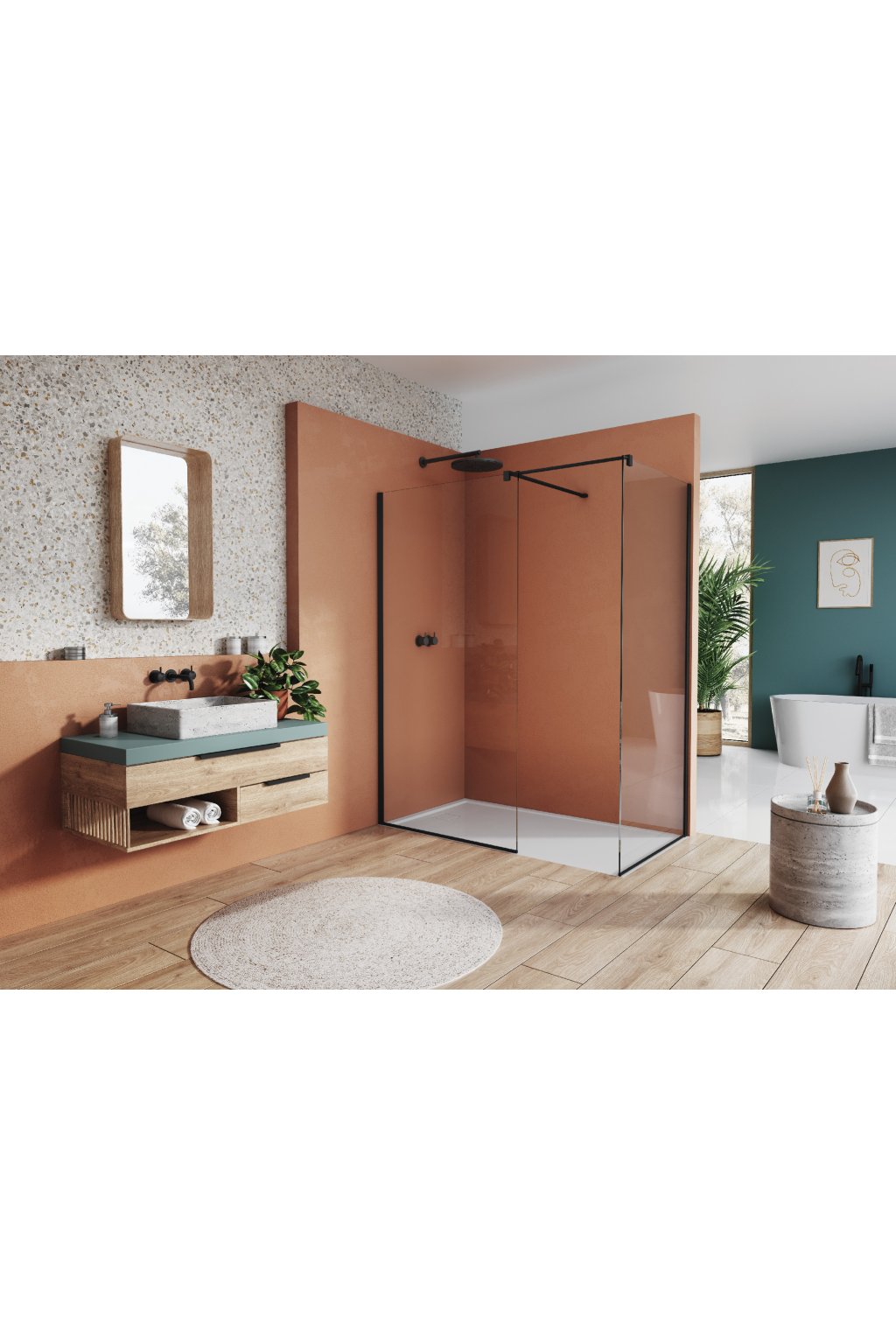 WALK-IN EASY BLACK-LINE pevná stěna samostatná s vyrovnávacím profilem STR4P, sklo 07=čiré sklo