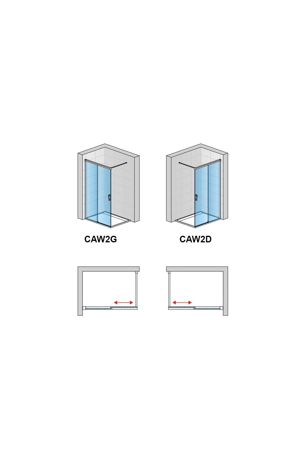 CAW2 | PEVNÁ STĚNA SAMOSTATNÁ S POSUVNÝM DÍLEM: 6 mm bezpečnostní sklo s antiplakovou úpravou Aquaperle, komfortní otvírání „Soft Open/Close“ systém u posuvných dveří garantují snadné použití.