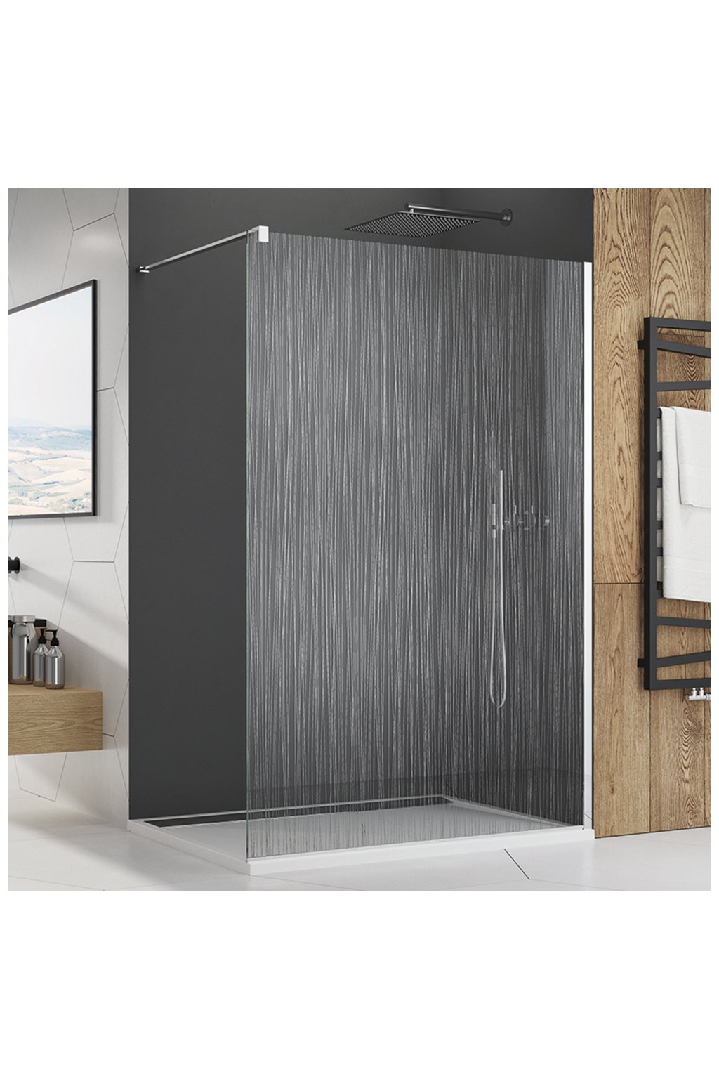 - pevné walk-in zástěny do velkých koupelen.