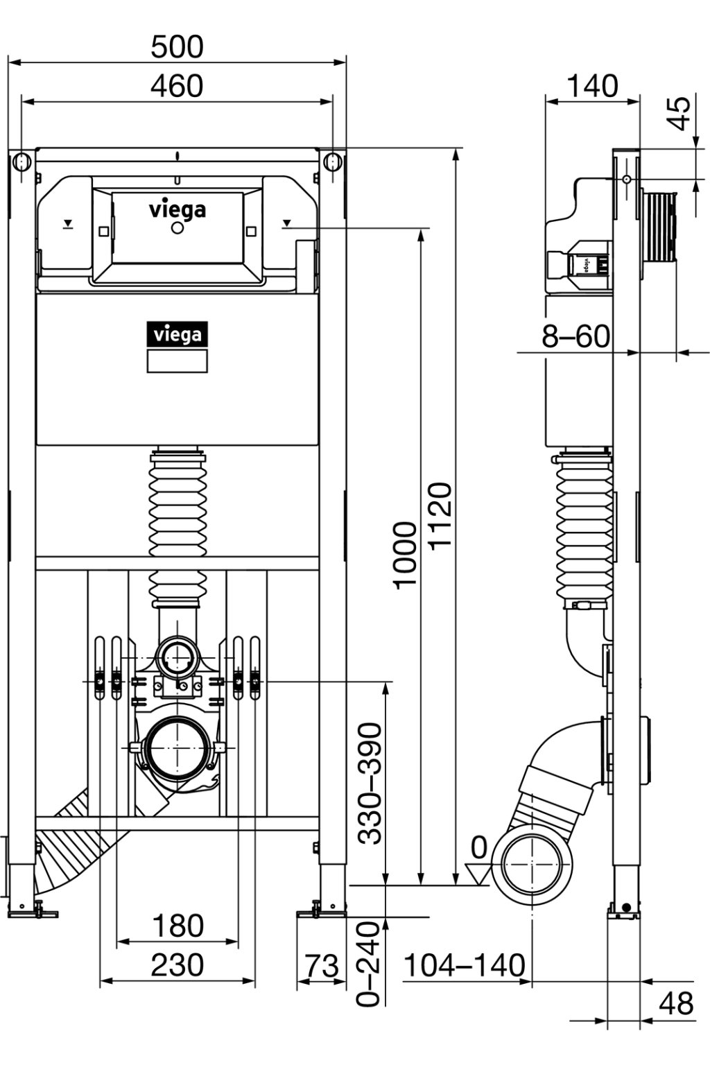 Viega Prevista Prevista DRY WC modul s nastavitelnou výškou 1120 x 500 mm, model 852231