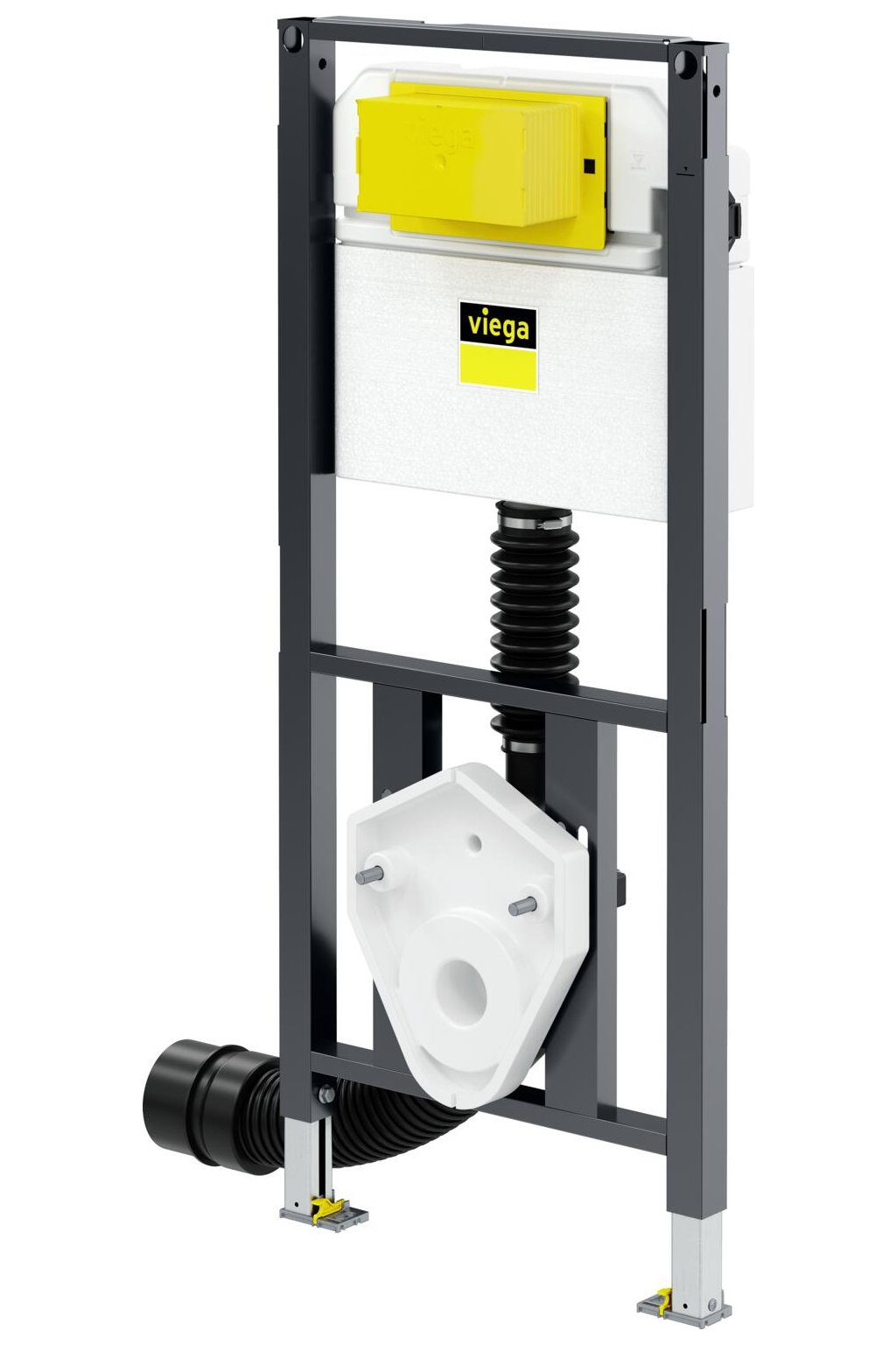 práškově lakovaný rám (40x40), splachovací nádrž pod omítku 3H, škrticí ventil, připojovací souprava WC, upevňovací materiál, uzamykatelné nožky pro výškové nastavení, vodní přípojka R1/2 zezadu a shora, připojovací oblouk WC DN90 (hloubkově nastavitelný) z PP, excentrický přechodový kus DN90/100 z PP